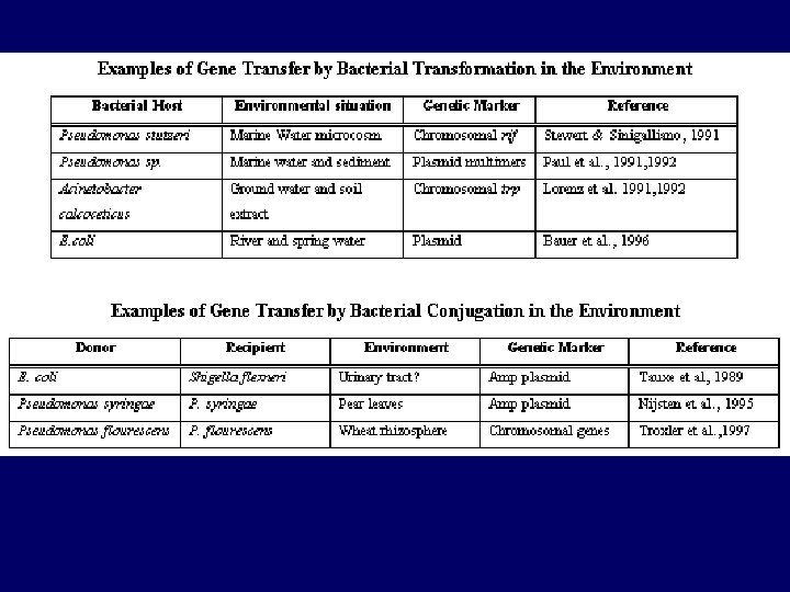 Horizontal Gene Transfer • The movement of genetic material BETWEEN prokaryotes • Common in prokaryotes. Useful for environmental adaptation (better than point mutations) Doolittle, 1997