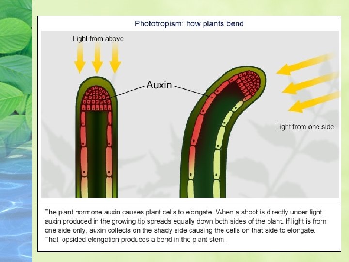 AUXIN • Auxin affects how plants grow. It’s a growth hormone. A response happens due to an uneven distribution of the hormone