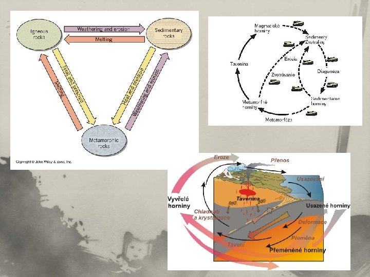 Geologický cyklus n Cyklus přeměny hornin (geologický cyklus) – …………. . Dílčí systémy geologického cyklu: n zemský povrch – ………. teploty a tlaky n zemské nitro – ………. teploty a tlaky