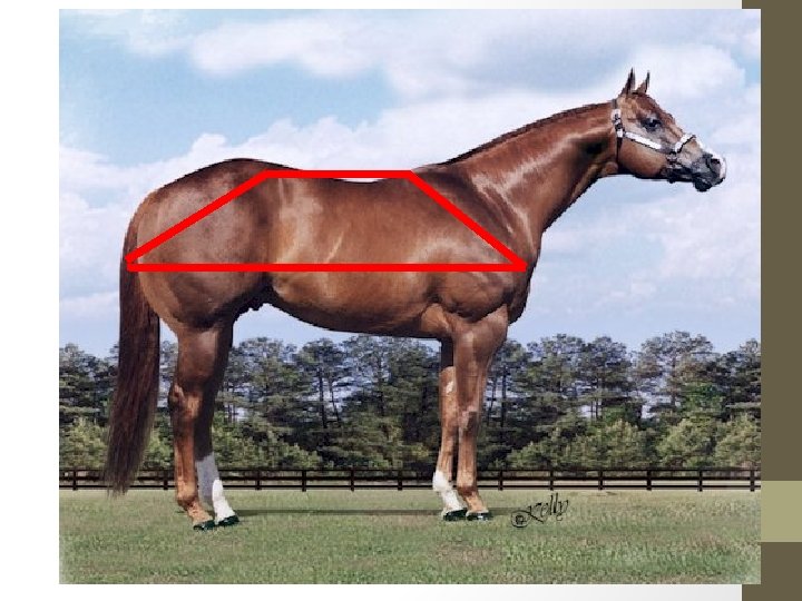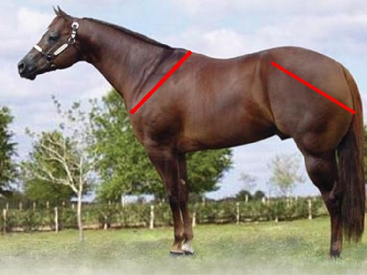Balance • When also determining balance, you will also need to look at the hip and shoulder angle • The longer and more laid back a shoulder is the further the horse can reach from it • The hip and shoulder should match • The horse should make a trapezoid shape • Short on top • Long and Sloped in the Hip and Shoulder • Long Underneath