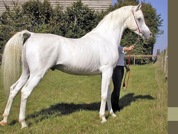 Arabians • Head • Important • Clean, sculpted, dished • Big eyes • Neck • Long, arched • Set high • Clean • Tail Carriage • High • Back • Short • Croup comparatively horizontal (not level)