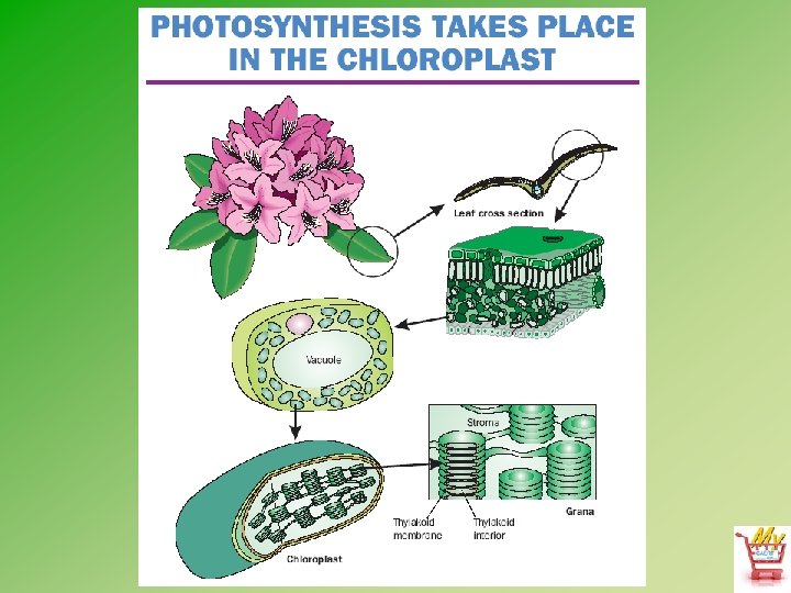 How does photosynthesis work? • The process of producing food begins with the light reaction phase. • Light energy is trapped and used to fuel the photosynthetic process. • The harnessing of light energy is made possible by pigments found in chloroplasts, which are specialized organelles within the individual plant cells. • As light enters the chloroplast, chlorophyll, carotene, and xanthophylls, pigments absorb the energy.