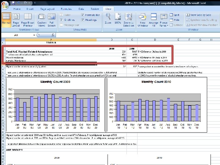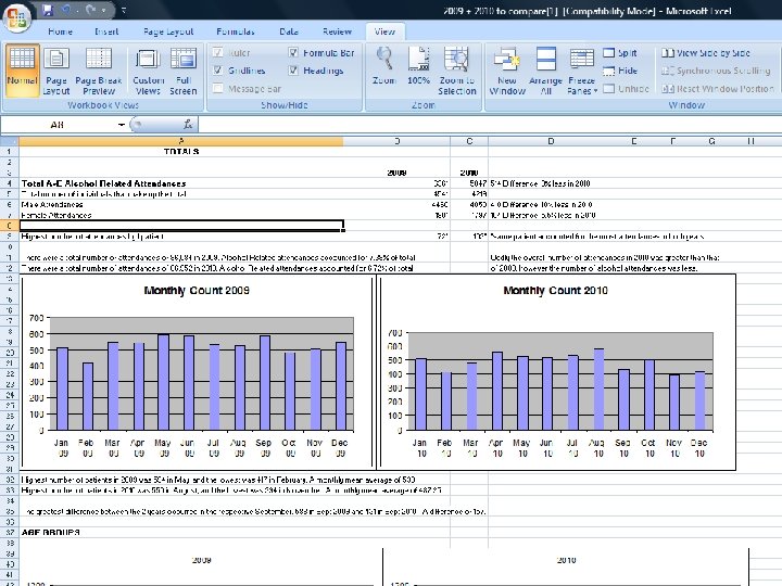 Year 1 of the Hospital Alcohol Project 2009/10 – 2010/11: – Total ED attendances increased by 1% – Alcohol related attendances fell by 8% (10% men 5% women) – Alcohol % total attendances fell by 0. 66%