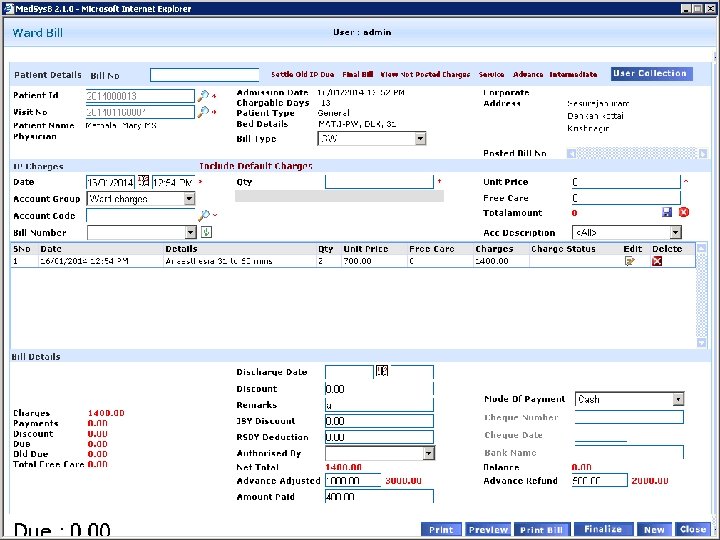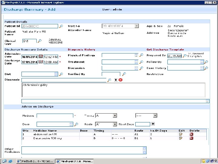 Modules Admin Out Patient Report Manager In Patient Messaging Service Laboratory & LIS Medsys. B Payroll Staff Attendance Pharmacy Billing Medical Certificate Operation Theater Dietary