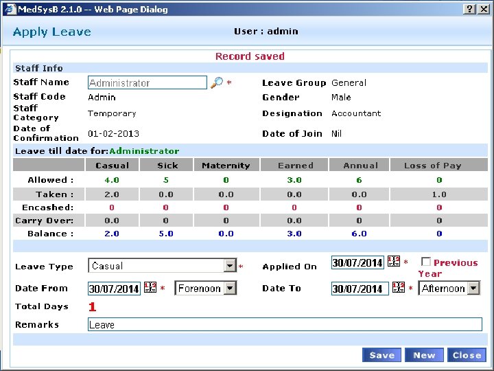 Staff Attendance System Apply leave for all the staff Track the leave taken and remaining leaves Encash and carry over staff’s leaves to next year as per the policy Define leave policy for Staff Groups