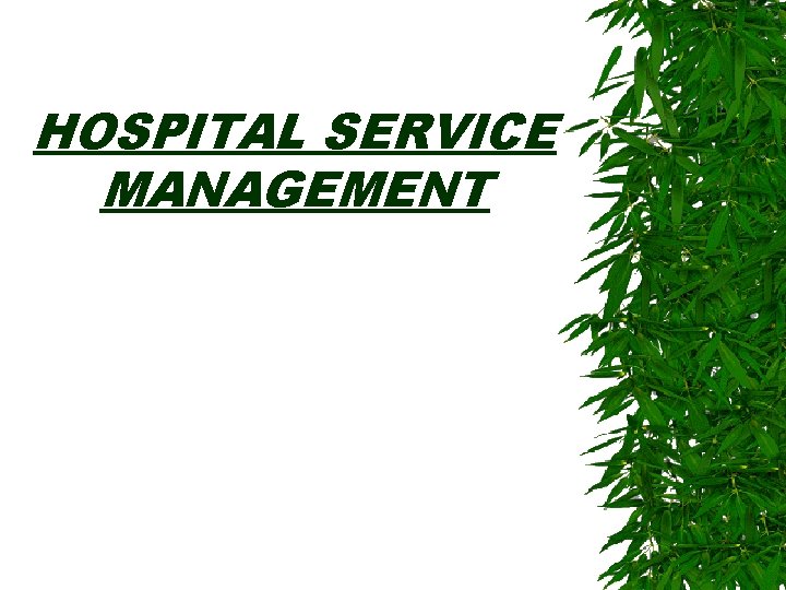 HOSPITAL SERVICE MANAGEMENT Hospital and Hospital management Hospital