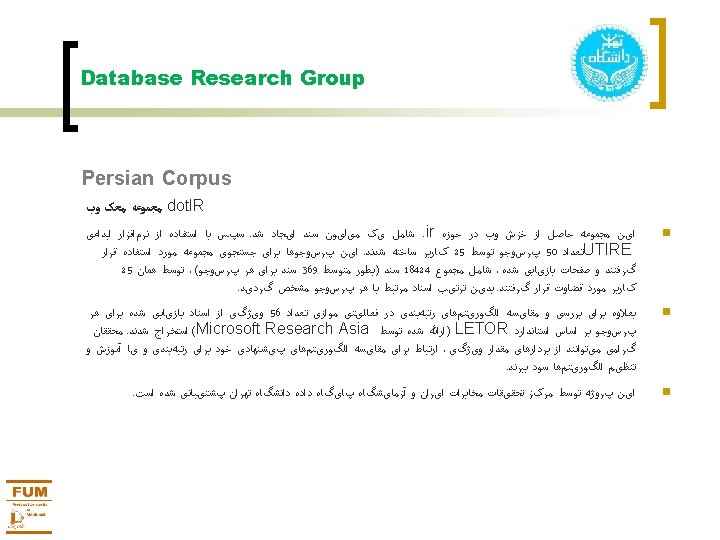 T § § ehran University Database Research Group Natural Language and Text Processing Group