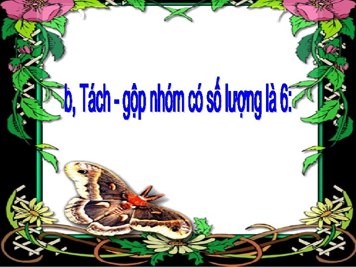* Tách theo ý thích: Cô cho trẻ tách 6 quả bóng thành 2 phần theo cách trẻ thích và đặt thẻ số tương ứng cho mỗi phần. - - Cô cho trẻ nêu cách tách của mình và cô biểu thị cách tách của trẻ trên màn hình cho các trẻ khác dễ quan sát.