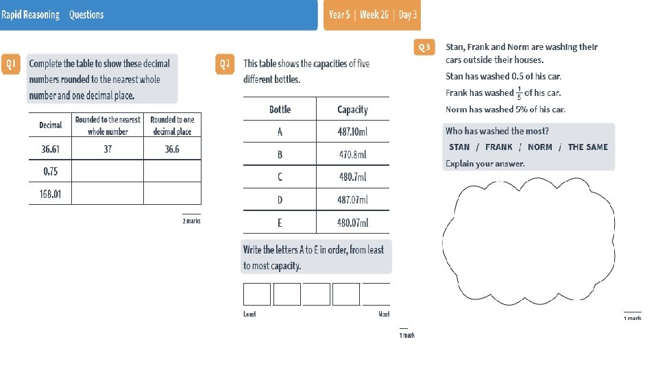 Maths: Fluent in 5 and Rapid Reasoning Week 26 Day 3 On the following Slides. Geometry: Booklet D: Pages 5 and 6: Angles Booklet E: Pages 5 and 6: Triangles and Quadrilaterals Booklet G: Pages 5 and 6: Angles investigation (if you don’t have a protractor then estimate by looking at an online protractor) Timestable Rockstars x 10 minutes