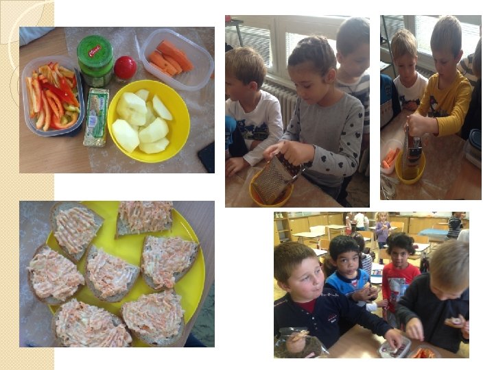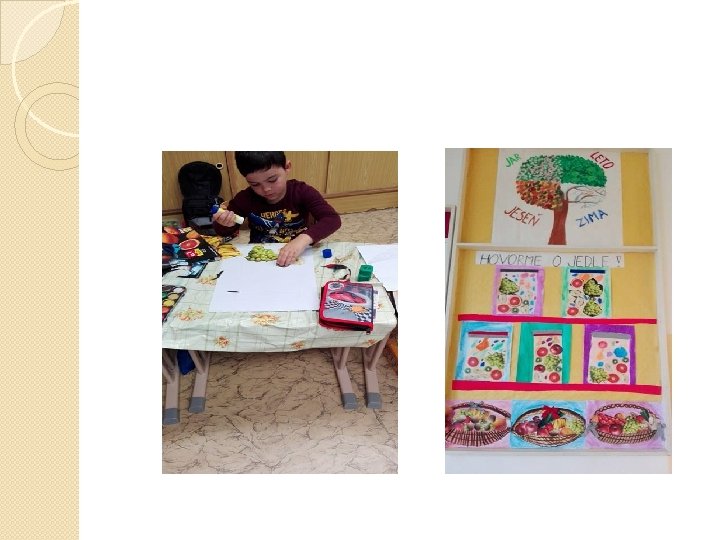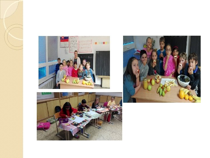 3. Triedenie ovocia �Ďaľšia aktivita sa zameriavala na ovocie vypestované v slovenkých sadoch. Na základe toho sme si ovocie rozdelili aj na tropické (vypestované v teplomilných krajinách) a „naše“ (vypestované v slovenských sadoch). Žiaci roztriedili ovocie a zeleninu, ktoré boli vypestované v slovenských sadoch poukladali do košíka a dodatočne vo dvojiciach vypracovali pracovný list.