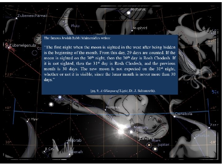 In the Library of Alexandria Philo’s writings could be found: When Philo says that “nothing in the whole heaven [is] destitute of light” he is referring to the moon when it first becomes visible to the naked eye. Philo refers to the conjunction elsewhere and says that it is “dark. ” Notice that he synchronizes the new moon with both the time of the month’s beginning, and the numbering of the days. It is a scientific fact that at the conjunction the moon is “destitute of light” with respect to the ability of any human to perceive it. Philo would be misleading here if he did not mean the first visible new moon, for before it appears there is something “destitute of light, ” namely the moon. Scenes from the Movie Agora Philo of Alexandria, a great Jewish philosopher, and prolific writer and commentator on Torah: De specialibus legibus 2: 140 Following the order which we have adopted, we proceed to speak of the third festival, that of the new moon. First of all, because it is the beginning of the month, and the beginning, whether of number or of time, is honorable. Secondly, because at this time there is nothing in the whole of heaven destitute of light. 2: 141 Thirdly, because at that period the more powerful and important body gives a portion of necessary assistance to the less important and weaker body; for, at the time of the new moon, the sun begins to illuminate the moon with a light which is visible to the outward senses, and then she displays her own beauty to the beholders. And this is, as it seems, an evident lesson of kindness and humanity to men, to teach them that they should never grudge to impart their own good things to others, but, imitating the heavenly bodies, should drive envy away and banish it from the soul.