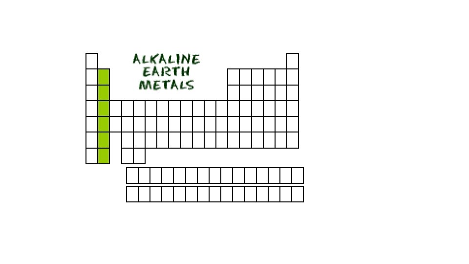 Alkaline Earth Metals • Group 2 of PT • Second most reactive family • They are silvery, shiny, and relatively soft metals. • When mixed in solution they are likely to form “basic” or “alkaline” solutions. • only found in compounds and minerals, not in their elemental forms. • They react with halogens to form compounds called halides. • All except beryllium react strongly with water.