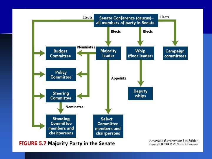 House-Senate Differences House n n 435 members; 2 yr terms Low turnover All 435 elected every two years Scheduling/rules controlled by majority party with powerful Rules Committee (controls time of debate, amends. , etc) Senate n n 100 members; 6 yr terms 1/3 elected every two years Moderate turnover Scheduling/rules agreed to by majority & minority leaders