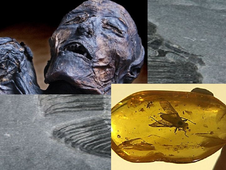 Fossils con’t • Perimineralized fossil: a fossil formed when dissolved minerals precipitate from a solution in the space occupied by the organisms remains • Organisms can also be preserved almost nearly intact when conditions aren’t met for fossilization