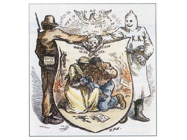 1. Union is restored. 2. A. A. gain citizenship & voting rights. 3. South’s economy and infrastructure are improved. 4. Southern states est. public school system. 5. K. K. K. & other groups terrorize A. A. 6. Sharecropping system takes hold in the South.