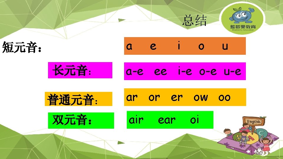 How did you spend your last summer holiday Slides: 22 Download presentation How did you spend your last summer holiday? Blueberry English Level 1 Book 2 Final Review New content Part 1 e e, ea u u, o, ou o o, a 长元音 a-e ee i-e o-e u-e a-e u_e ai, ay ae ea ey eigh ui, ue, ew i-e o_e i-e, y, ie, igh oa, oe, o, o-e, ow ee ee, ea, ei, ie 普通元音 ar or er ow oo er or er, ur, ear, ir, or aw, au, al oo ow oo, ui, ue, ew, ou, u ow, ou 双元音 air ear oi air oi oy, oi ear eer ere ear eir are ere 请找出以下音节 shift spilt quilt sit swift stilt bit rich may brain sail away afraid spray sway waist field thief chief read crab lab mask raft fax lax tax pact slept kept net pet felt smelt help desk try bright why guard by fie shine craft cute chaff slept stark smelt Vet yelp wept lesson kelp fish chop Froth much quake stake peep jeer three Hike spine joke smoke spoke mute guard craft cute chaff slept stark yelp wept lesson kelp fish chop ghost Knee gnaw plot Thank you!