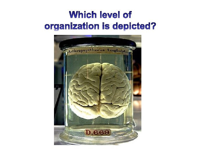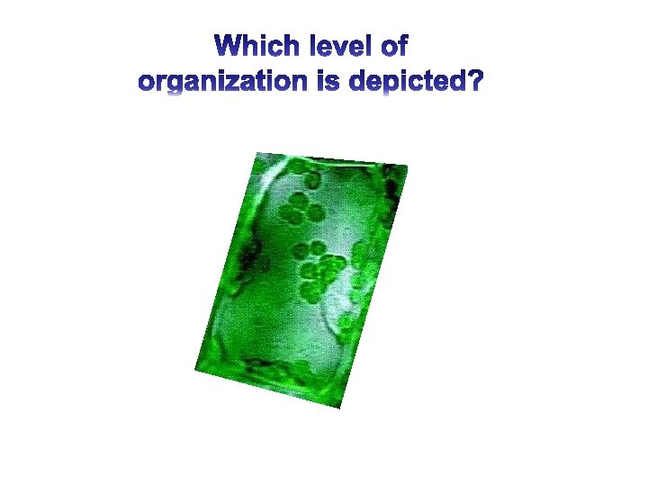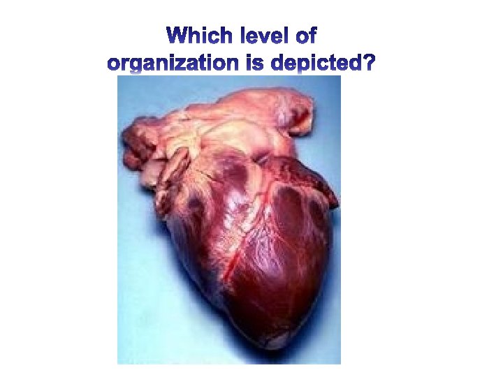 Determine the Level of Organization • There will be a variety of pictures on the following slides, you must determine the level of organization for each. • 1 finger = organism • 2 fingers = organ system • 3 fingers = organ • 4 fingers = tissue • 5 fingers = cell