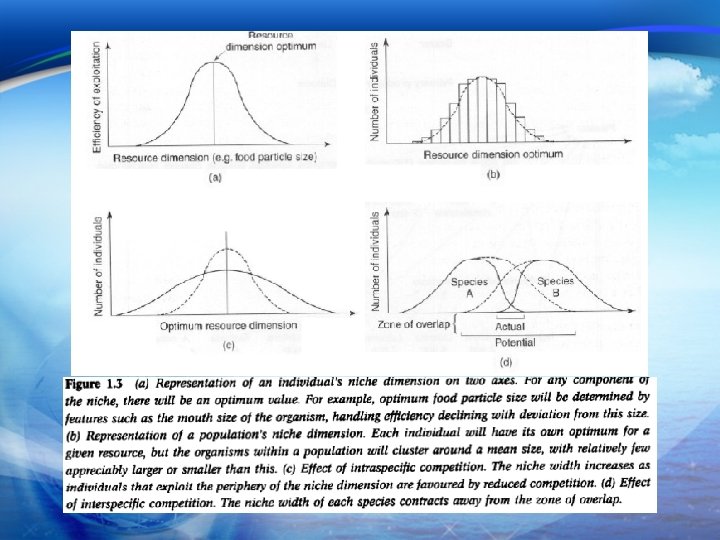 How do Humans Impact Aquatic Systems 5. Key ecological concepts (cont. ) b. The niche q Sum of all of its interactions with other species and with components of the abiotic environment c. q Quantifiable dimensions – interacting series of dimensions q Feeding relationships q Fig. 1. 3 § Niche dimension – optimum value § Individual, population § Niche width § Intraspecific and interspecific competition Representing the community n n n List of co-occurring species (with indications of relative densities) Diversity The availability of energy