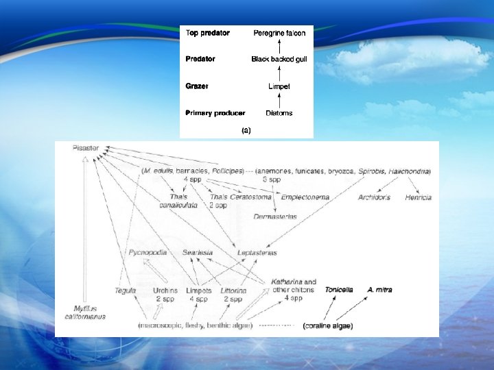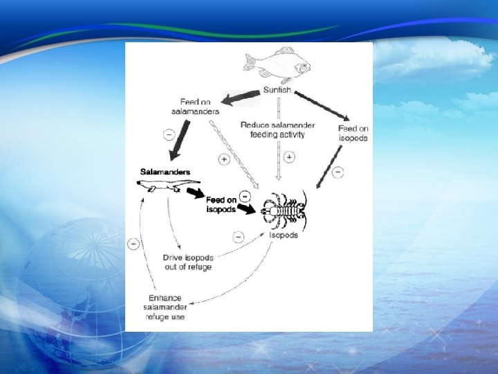 How do Humans Impact Aquatic Systems 5. Key ecological concepts (cont. ) d. Rules in food web structure • Energy flow • • • Proportions of species at different levels: constant • • • Basal species to species richness: B/S = 0. 19 Intermediate species to S: I/S = 0. 53 Top predators to S: T/S = 0. 29 The ratio of prey to predators (B + I)/(I + T) = 0. 89 Omnivory • • One way Two species eat each other (life stages) Two of more trophic levels Links in the food web • • • Max. number of potential links : S 2 - S = S(S-1) Connectance (C); actual number of feeding links (L) C = L / S(S-1): complexity of a web