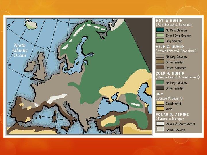 The map to the right illustrates Germany’s favorable climate for agriculture.