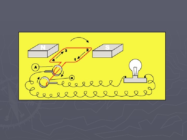 Making electricity ► When the coil of wire is in the vertical position, no electricity is produced because the coil does not cut the magnetic field, and no current flows.