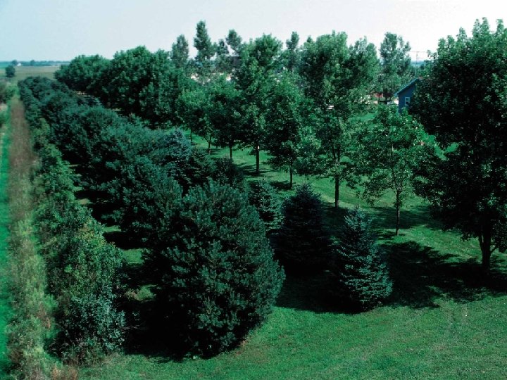 If wind is stopped completely violent wind gusts at ground level can lift the soil into the air and it is blown away. To avoid this, there are usually 2 lines of trees in each windbreak – one line of large trees and a second line of shorter trees.