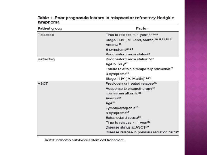 ASCT high-dose therapy regimens üAlthough there was no difference in OS, freedom from treatment failure at 3 years was significantly improved in the ASCT group (55% vs 34%, P. 02). registry data address the benefit of ASCT in these patients. üThe randomized trials of ASCT in RR-HL used BEAM as the high-dose therapy regimen and thus BEAM could be considered the standard. We would stress that ASCT programs should use a regimen with which they have experience and report favorable toxicity results.