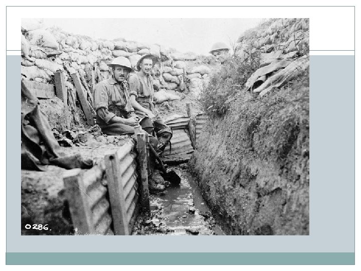 Trench Warfare Facts �The mud in the trenches was often so deep that soldiers who fell into deep spots would be suffocated and never seen again. �Corpses lay all over the battlefield encouraging rats and lice…some rats were said to be the size of small cats. �The vermin spread diseases such as Trench Fever and Weil’s Disease