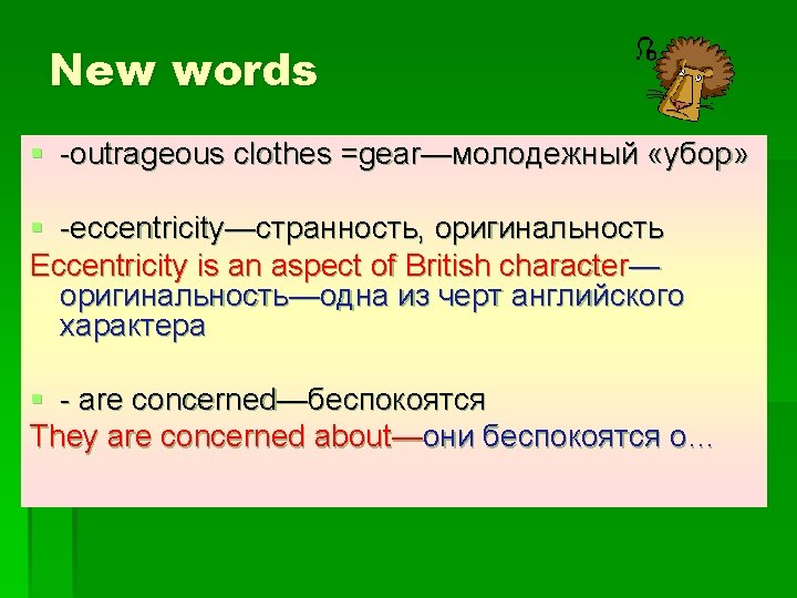 The second reading Questions 1. What hear styles are allowed in Britain? 2. What kind of accessory do Britain’s young people like? 3. What are Britain’s young people concerned about? 4. British young people are like Russians , aren’t they?