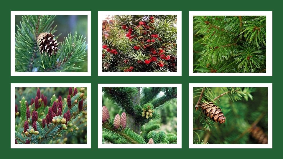 Conifers With around 588 living species, this is the largest gymnosperm group. Conifers grow in all climates and on all continents except Antarctica. They all bear their seeds within a cone or a structure resembling a berry. Most conifers are trees. Conifers appeared in the fossil record about 290 million years ago and have been an ecologically important, widespread group ever since then.