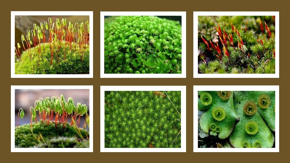 Mosses • Mosses are flowerless/seedless plants. They reproduce by spores. They are plants that most people have seen but many have ignored. The most commonly found group is the green mosses that cover rotting logs, grow on the bark of trees, and grow in the spray of waterfalls, along streams and in bogs. Even though mosses often thrive in wet habitats, some mosses and some liverworts can survive in quite dry environments such as sandy soils and exposed rock outcrops.