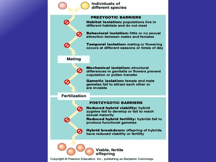 Reproductive Barriers • Geographic Barriers o. Egs. rivers, oceans, mountains • Biographical Barriers o. Prezygotic and Postzygotic