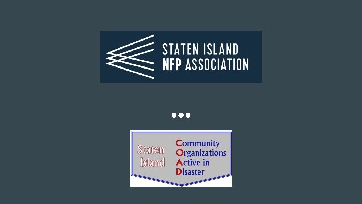 Members of the Staten Island COAD American Red Cross Beacon Christian Community Health Center Office of the Borough President of Staten Island College of Staten Island Community Health Action Dept. of Health & Mental Hygiene Eden ll The Jewish Community Center of Staten Island Lifestyles for the Disabled Inc. Northfield Community LDC Port Richmond CERT Project Hospitality Richmond Medical Society Richmond Senior Services Richmond University Medical Center Salvation Army SCORE Staten Island Arts Staten Island Chamber of Commerce Staten Island Foundation Staten Island LTRO Staten Island Mental Health Society Staten Island University Hospital Stephen Siller Tunnel to Towers Foundation