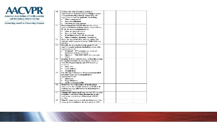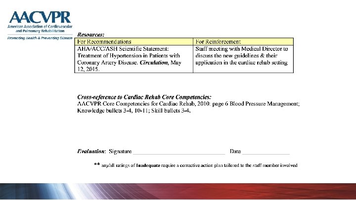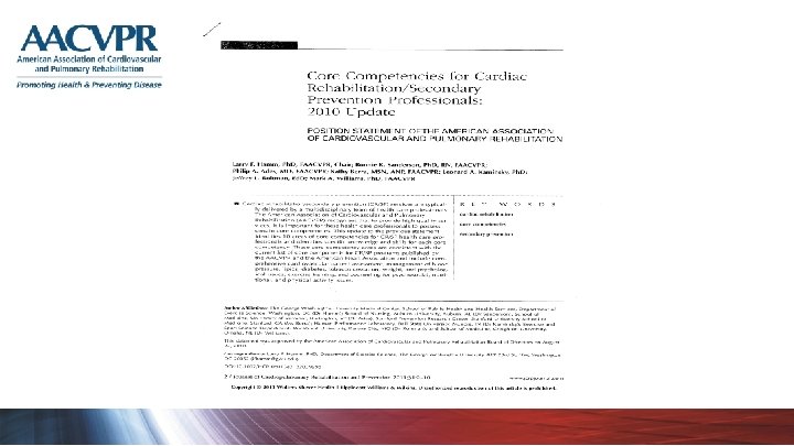 AACVPR Program Certification CARDIAC REHAB Program Certification: Four assessed competencies MUST be specific to Core Competencies for Cardiac Rehabilitation/ Secondary Prevention Professionals: 2010 Update Hamm L, Sanderson B, Ades P, et al JCRP 2011; 31: 2 -10