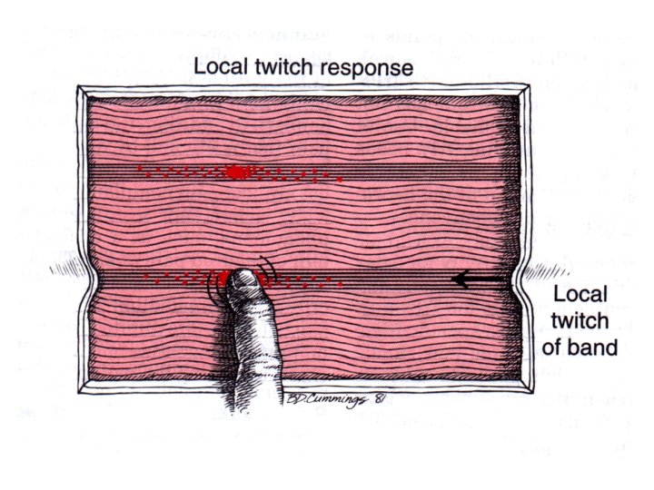 Confirmatory Observations for Identifying a Trigger Point • Visual or tactile identification of local twitch response (LTR) • Imaging of a local twitch response induced by needle penetration of tender nodule • Pain or altered sensation (in the distribution expected) on compression of tender nodule • EMG demonstration of spontaneous electrical activity