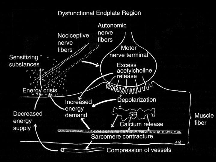 Neurologic dysfunction caused by Trigger Points • Sensory: Numbness or paresthesia • Proprioception: Imbalance, dizziness • Autonomic: Pilomotor activities, coryza, abnormal sweating/lacrimation/salivation • Motor: Spasm, weakness, loss of coordination and decreased work tolerance