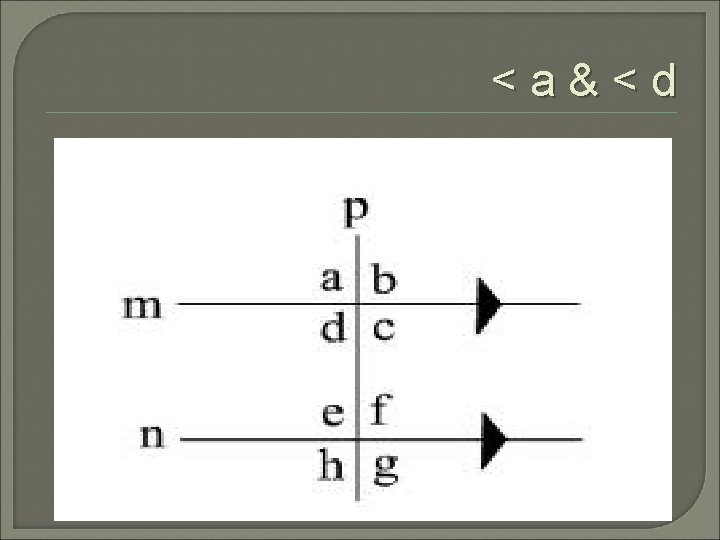 Warm-Up Part 1: Name two pairs of each angles Alternate Interior Alternate Exterior Corresponding Consecutive Interior