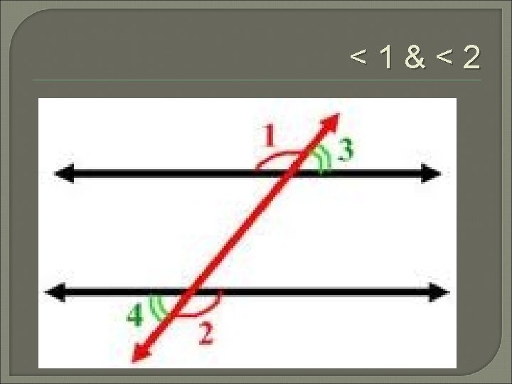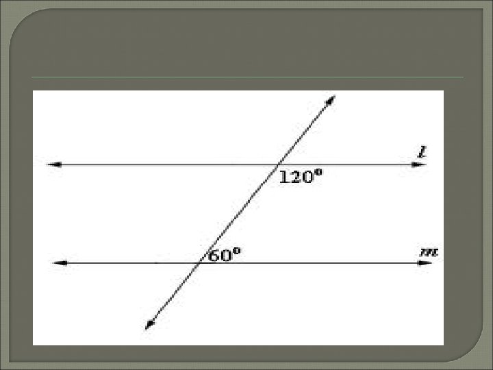 How to identify pairs of lines and special angles formed by two lines and a transversal? Alternate Exterior Angles Two angles that lie outside the two lines on opposite sides of the transversal Angle measures are CONGRUENT Alternate: opposite Exterior: outside