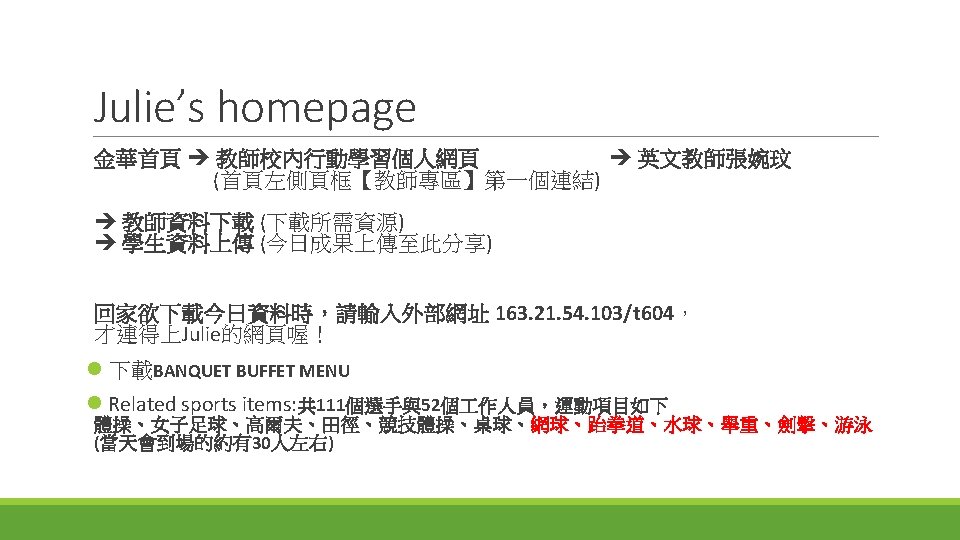 What to talk about next? * Avoid subjects that could potentially cause fights. (religion or politics) * Topics easy for most people to join in, not with limited subjects. Not so personal that anyone would feel uncomfortable. * Possible topics: food, attractions in Taipei/Taiwan, sports and games (there also coaches, sports guards, and other staff), staying in Taipei (weather, traffic…), personal experience in the UK, school life