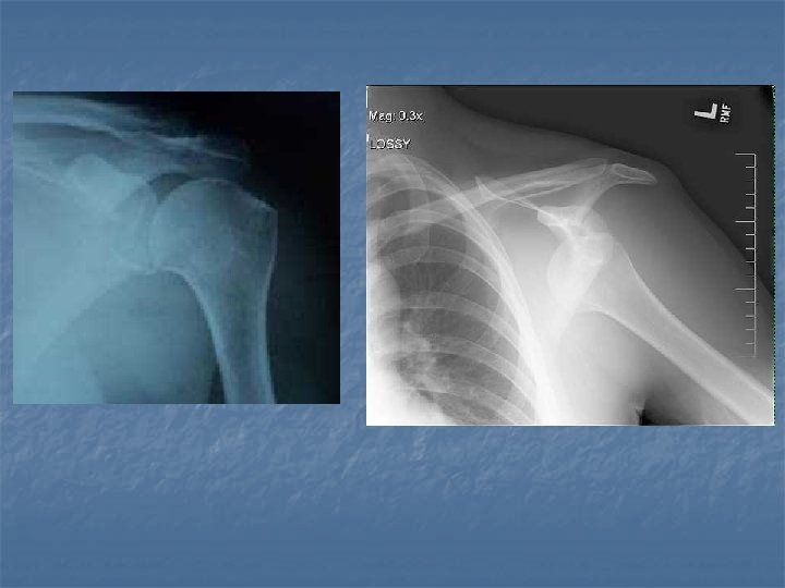 Clinical Presentation n The patient with an acute anterior dislocation is in distress and complains of acute pain. The affected limb has decreased ROM and a loss of deltoid contour. The pt. will often complain that it felt as though the shoulder slipped out of joint.