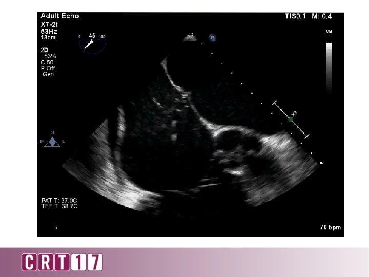 Complications • Tamponade 0. 5 -4 % • Embolic events: air/clot • • – Ischemia, MI, TIA/stroke ~ 1% Mortality 0. 1 – 1. 4 % Arrhythmias Vagal stimulation Transient ST elevation