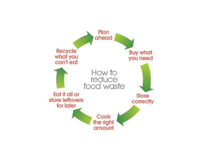 1. Have an ort can that is sorted • Ort is wasted food 2. Food that is not consumed can be put in separate buckets 3. You can donate food to homeless or give to animals 4. Food is saved