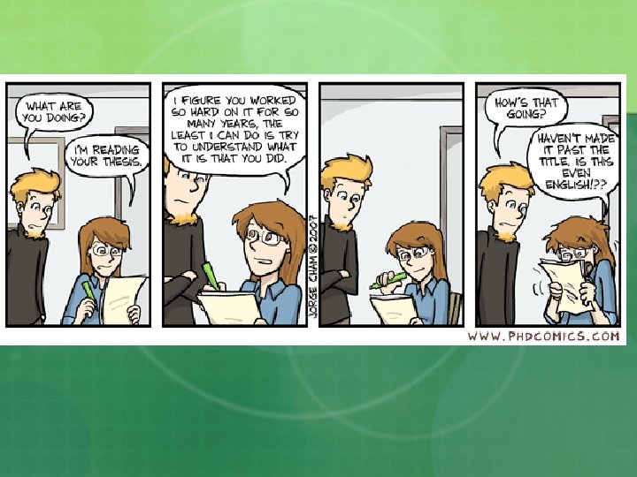 Abstracts n Purpose Summarize n Entice n n A fully self-contained, capsule description of the paper n n It must make sense all by itself Does almost as much work as the paper