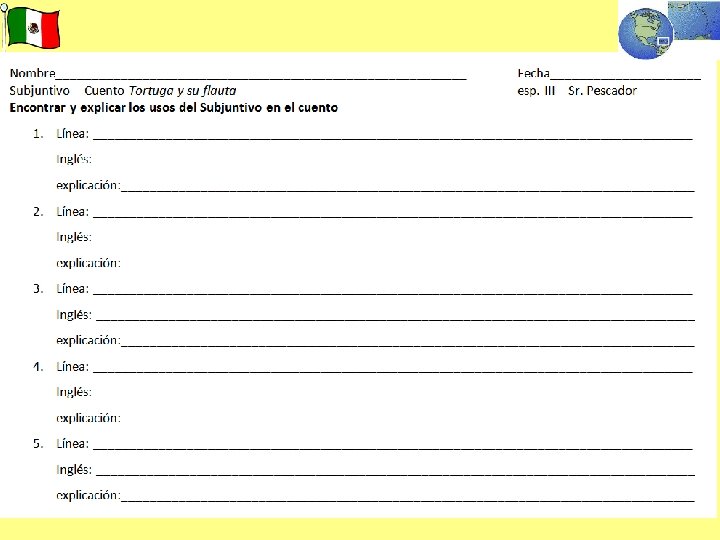 Hoy es martes el 11 de marzo de dos mil catorce La agenda - Canción: Jesse y Joy – “Una en un millón” - Repaso de la tarea - Terminar la prueba oral de ayer - Video: La tortuga y su flauta - subjuntivo del video Objetivos - Demostrar… - Habilidad de comprender textos avanzados en español - Habilidad escribir en español - Habilidad de hablar en español Tarea: - ¡Subjuntivo! - Examen el martes: Subj. verbos 91 -200