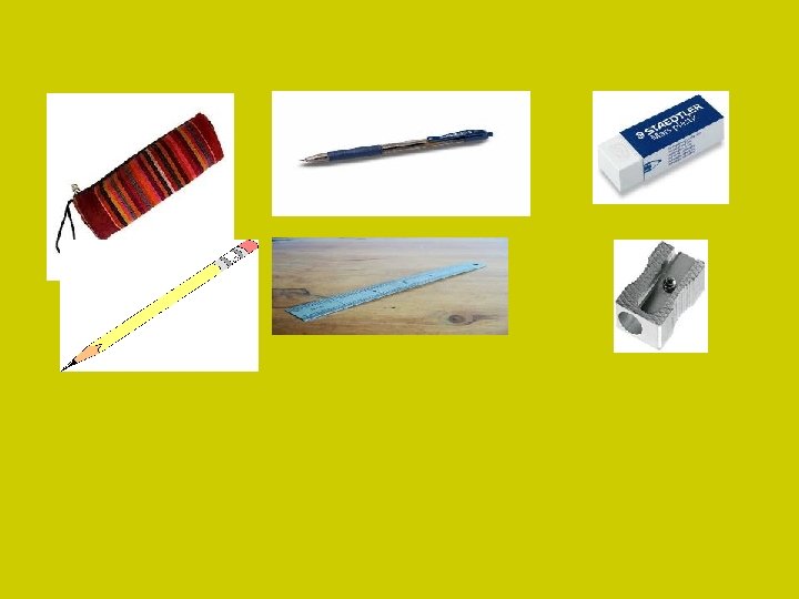 En mi estuche tengo un lápiz un bolígrafo una goma una regla un sacapuntas En mi estuche tengo un bolígrafo, una goma, un lápiz, una regla y un sacapuntas.