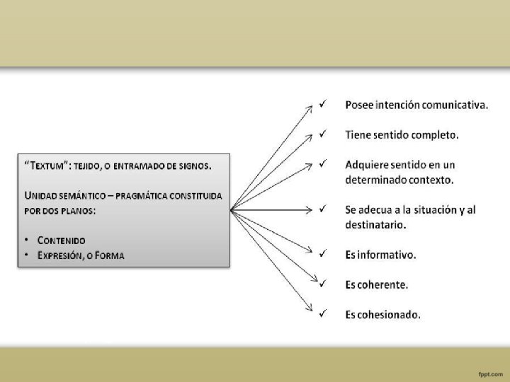 CONCEPTO DE TEXTO El concepto de «texto» abarca: 1. Una unidad total de comunicación: puede ser de forma oral o escrita, sin importar su extensión. 2. Unidad de carácter social: es un producto de la actividad comunicativa. 3. Unidad estructural: se sostiene en una estructura coherente y cohesionada. 4. Unidad lingüístico-semántica: conjunto de palabras que poseen un significado global.