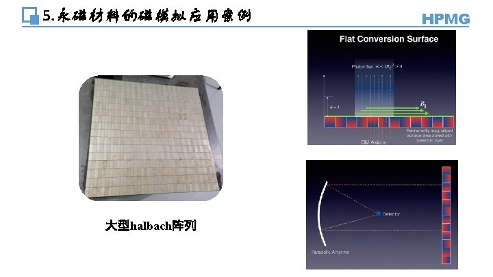 4. Sm. Co&Nd. Fe. B永磁材料可替代性研究 N 45 SH HPMG Sm. Co 2: 17 Material Br k. G at 20 C Br k. G at 150 C Bd k. G at 150 C N 45 SH 13. 60 11. 65 5. 54 Sm. Co 32 11. 60 11. 07 5. 33