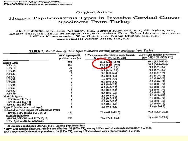 Hesaplanan Global HPV DNA Prevalansı (Sitolojik yönden normal 139, 777 kadını içeren 67 çalışmanın meta-analizi) TÜM DÜNYA % 10. 2 (10. 0 -10. 5) AFRİKA % 23. 4 (22. 0 - 24. 8) AMERİKA % 12. 8 (12. 1 - 13. 5) AVRUPA % 8. 2 (7. 9 - 8. 6) ASYA % 7. 6 (7. 2 - 8. 1) De Sanjosé, Díaz, Castellsagué et al. Lancet ID 2007