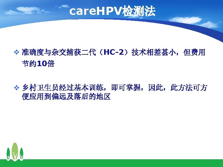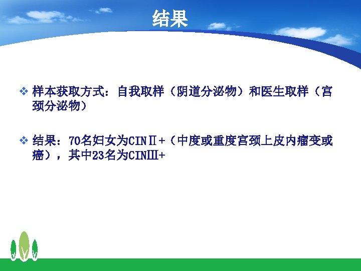山西省宫颈癌筛查 协和医科大学乔友林教授在 2007年 5月10日 至 6月15日对山西省两个乡村的2388名妇女 进行了宫颈癌筛查[5] [5]You-lin Qiao, John W Sellor, et al. A new HPV-DNA test for cervical-cancer screening in developing regions: a cross-sectional study of clinical accuracy in rural China. Lancet Oncol 2008; 9: 929 -36