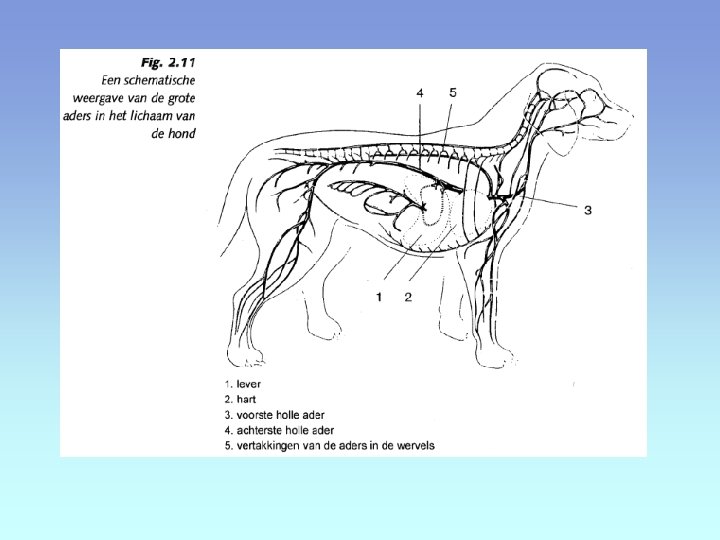 Circulatiesysteem in zoogdieren 7 Capillaries of head and forelimbs Anterior vena cava Pulmonary artery Aorta Pulmonary artery 9 6 Capillaries of right lung Capillaries of left lung 2 4 3 Pulmonary vein Right atrium 3 11 5 1 Left atrium Pulmonary vein 10 Left ventricle Right ventricle Aorta Posterior vena cava 8 Capillaries of abdominal organs and hind limbs